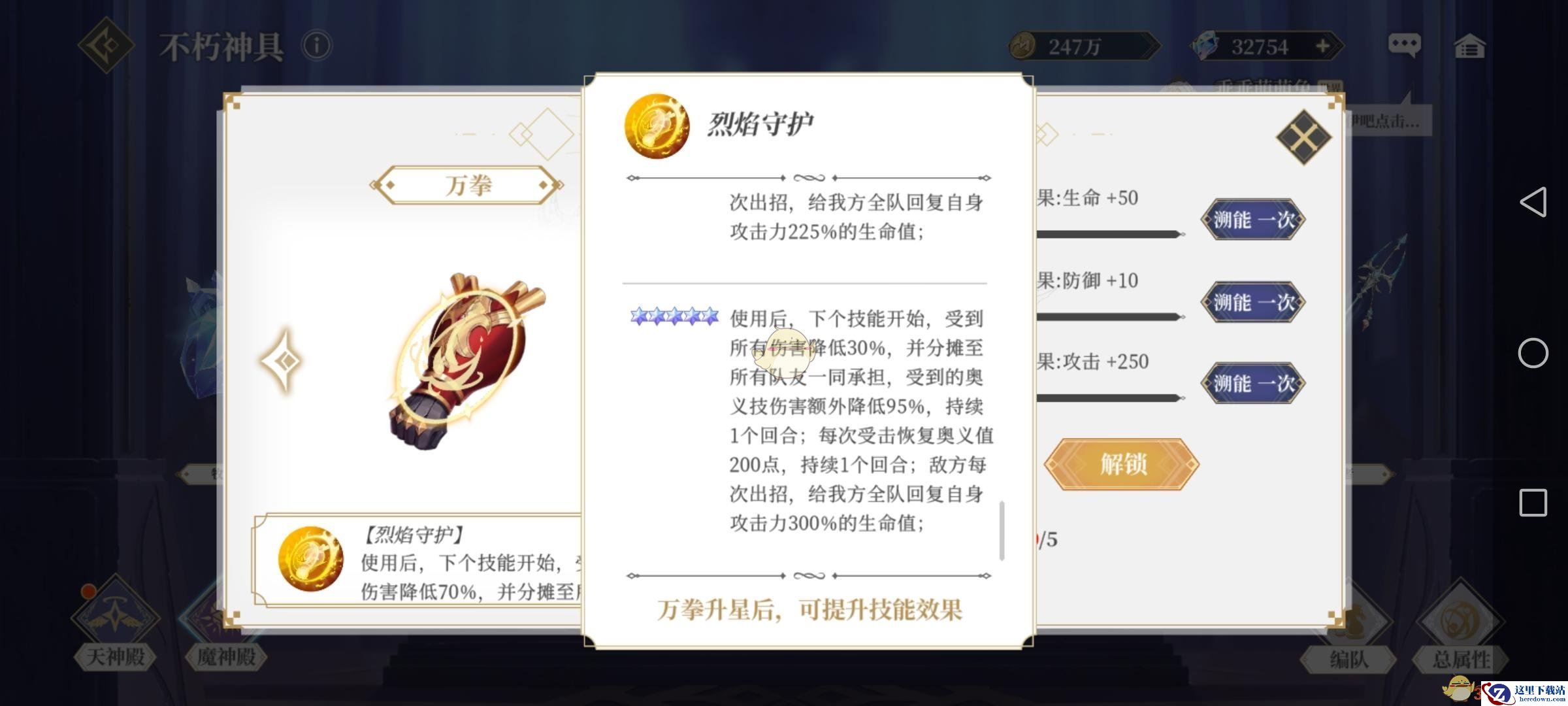 2星起步,使用后额外降低敌方奧义技伤害55%,持续1个回合;