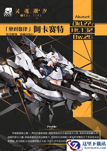 阿卡赛特原本是宇宙联盟核心国·周克的皇家战舰。后来舰体损毁,芯片被装入人型素体内,身体里至今依旧保留着作为战舰的军火力量。