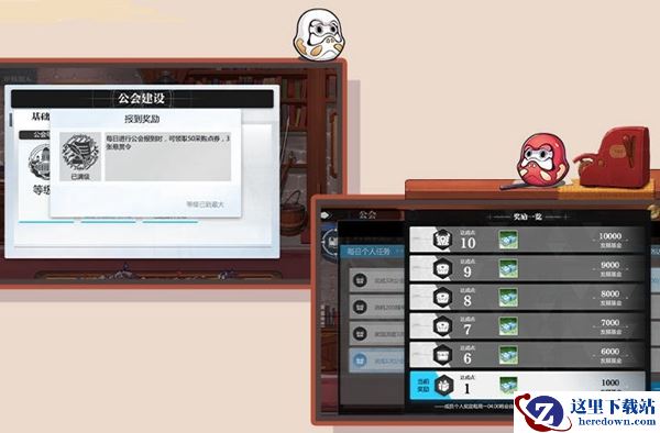 在工会的主页玩家可以每天进行报道,并且领取到采购点券和悬赏令。