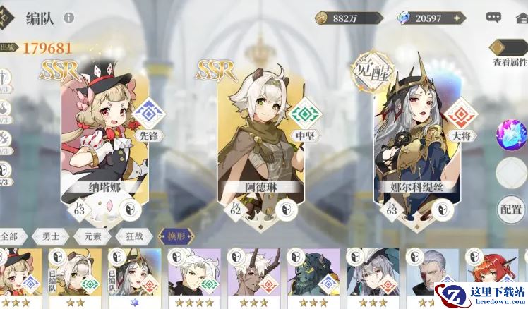 1、换形高配阵容:纳塔娜+阿德琳+娜尔科缇丝。先锋主要负责积攒奥义值,中坚主要来变形为对手添加换形buff。娜尔科缇丝则是打一个输出的位置。