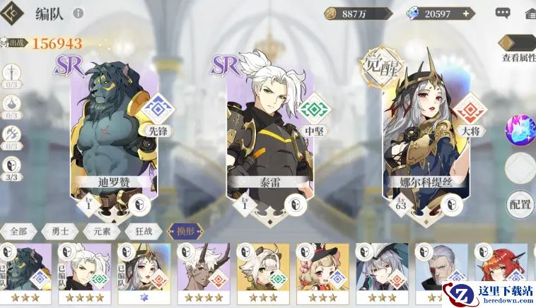 2、低配阵容:迪罗赞+泰雷+娜尔科缇丝。如果没有SSR兔子和熊猫,可以前期用这两个SR来替代,后续再进行更换。