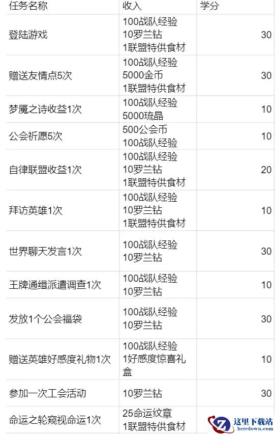 PS:学分每满250可以领取一张英雄征募券,每周学分积累到一定程度也可以领取奖励。