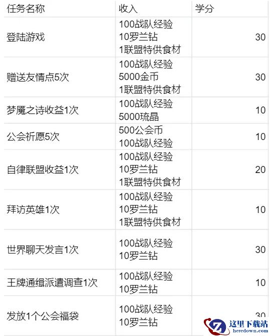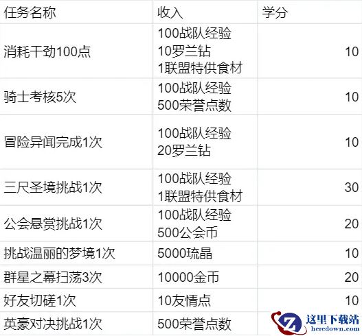 PS:学分每满250可以领取一张英雄征募券,每周学分积累到一定程度也可以领取奖励。