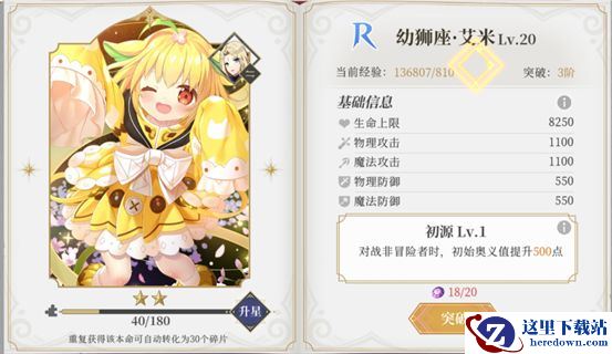 1、幼狮座—艾米:对战非冒险者时,初始奥义值提升500点