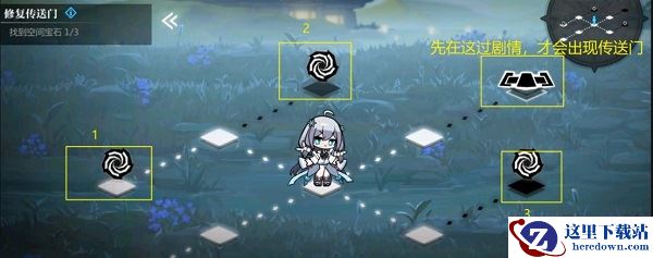 1、进入迷宫后先去过剧情,过完剧情之后才会出现传送门,先去过哪个都可以,我们举例先去1号门。