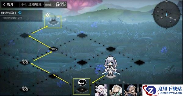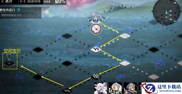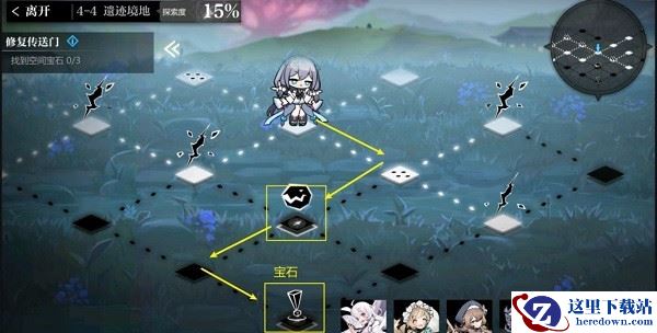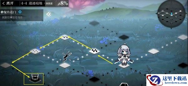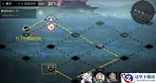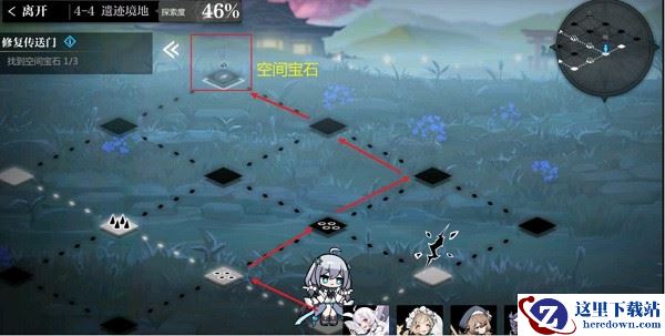 2、按照箭头指的方向走,拿到了第一个宝石,然后传送回去,再去2号门空间裂缝,尽量不要走空地,如果碰到传送门会传送到进门的初始点。