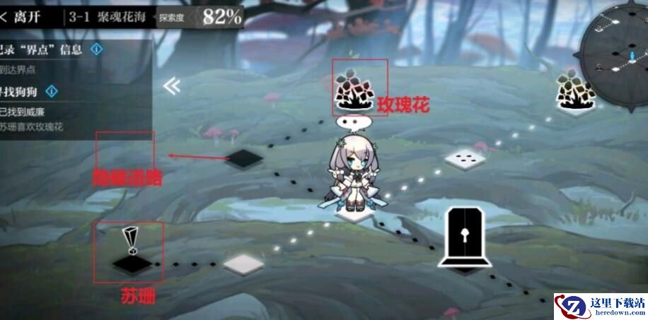 5.我们先来到玫瑰花这里,找到苏珊,如何来到隐藏的道路,这里就能从右边打开门了,注意不要忘拿宝箱了,最后打完boos就能完成探索了。