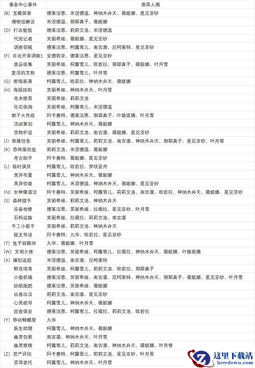 1、截止目前为止所有委托的阵容推荐如下图所示: