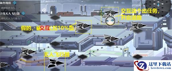 6.首先交互右上角的飞机道具,会开启新道路,和寻找无人飞行器任务