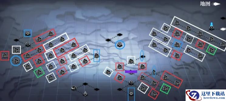2、蓝色形状:传送门,不同形状对应不同传送门(蓝色圆形,传送过去有宝箱拿)。紫色横条:机关,一定要开,开了才会出现一条通往boss 的路。*有时候会触发小游戏,难度很低。
