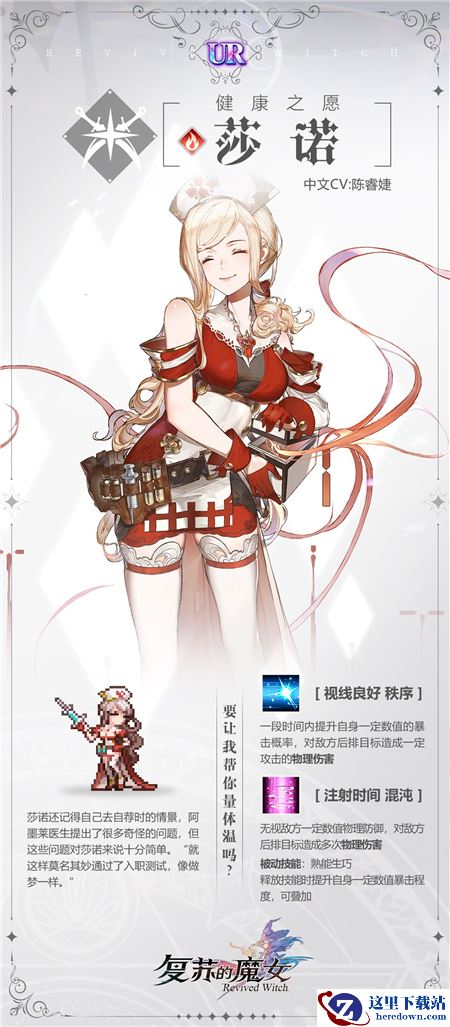 《复苏的魔女》游戏中莎诺是新上线的UR角色,很多玩家想知道她的技能怎么样,那么今天小编就给大家介绍一下复苏的魔女莎诺技能强度分析,有需要的小伙伴不要错过了。