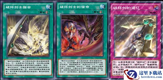 「破坏剑士融合」:可以从手卡、双方场上把融合素材送墓,把以「破坏之剑士」为融合素材的融合怪兽特殊召唤。可以融对面场上的龙族怪兽或者「黑魔术师」。此卡在墓地,可以送墓1张手卡回手。