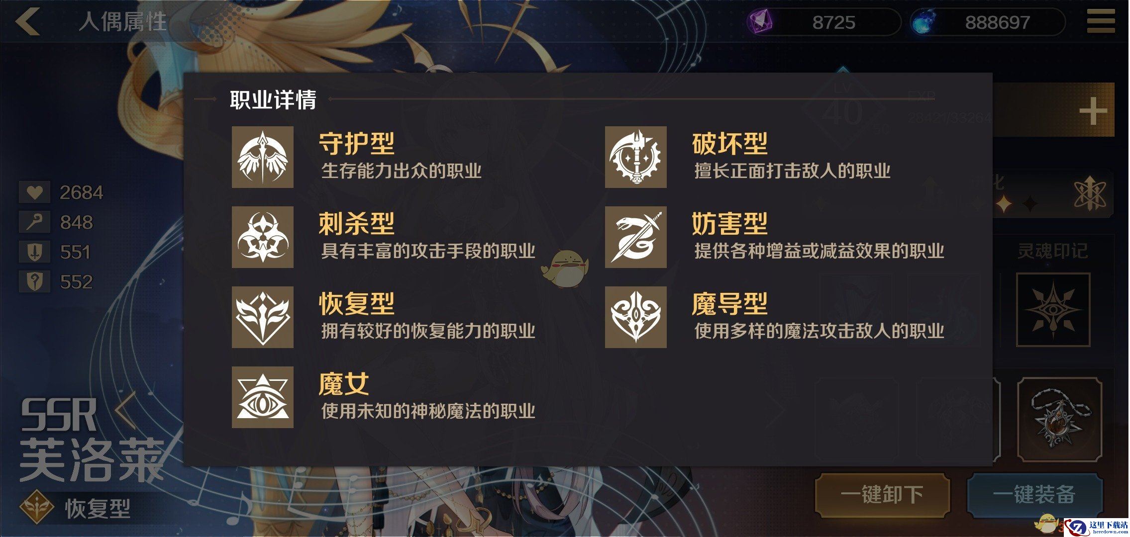 虽然游戏里一共有守护、刺杀、恢复、破坏、妨害、魔导、六种职业(没有把魔女算在其中),但是可以将这六种职业分成三种定位。首先坦克定位的是守护职业,守护职业的特点就是血厚并且防御力高。输出定位一共有三个职业:刺杀、破坏、魔导,其中刺杀主要是专偷袭敌人后排,破坏是主要的物理输出,魔导则是主要的魔法输出。其次妨害和恢复是辅助定位,这两种职业分别提供回血和一些buff。