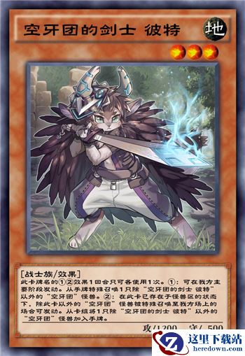 空牙团怪兽下级都有类似的效果,可以特召手上的其他空牙团,并在有其他空牙团特召时触发效果。彼特应该可以算是新包空牙团的核心之一,在其他空牙团特召后可以检索空牙团怪兽,非常不错,是运转的核心,甚至可以打出特召其他下级检索后,再利用下级特召检索的大哥,推荐想玩可能空牙团的玩家优先满三。