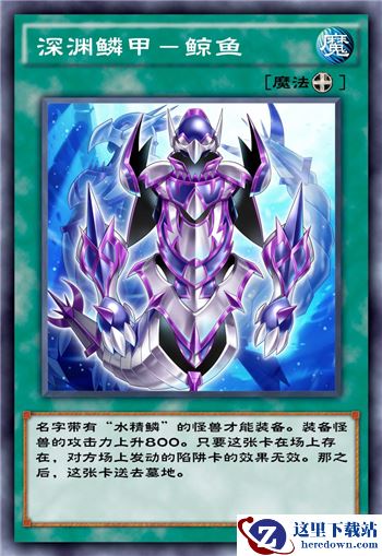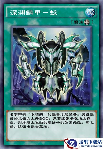 水精鳞专用加800攻的装备且可以无效一次对方魔法卡的效果。