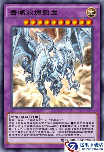 用两只白龙融合而成的怪兽,既可以正常融合召唤,也可以通过送墓自己场上两只白龙来特殊召唤。