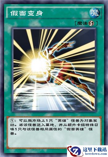 假面卡组的绝对核心卡,取对象选择一只英雄怪兽,送墓后特召对应属性的假面英雄。