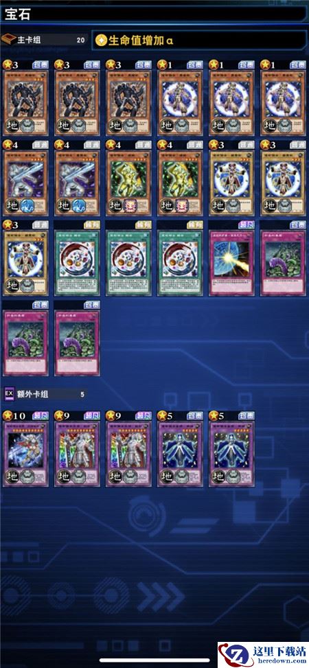 新卡包出来前最让我期待的就是宝石骑士了,最后果然也不负众望,能够组出有一定强度的卡组。个人认为下面这套卡组强度应当在科学怪人卡组之上,至少算是娱乐卡组中的豪杰,甚至可能有t3到t2的强度。更关键的是这套卡组操作感拉满,顺利展开时一回合打空额外卡组,并纯靠效果伤害一回合杀满血对手。