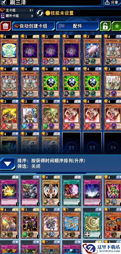 21张攻击力1000以下守备力1400以上的怪兽,然后自动刷10级爱得就可以了