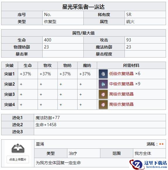 以上就是小编整理带来的星光采集者露达技能属性介绍,大家还喜欢吗?更多精彩内容,请点击关注这里下载站,小编将持续为您更新!