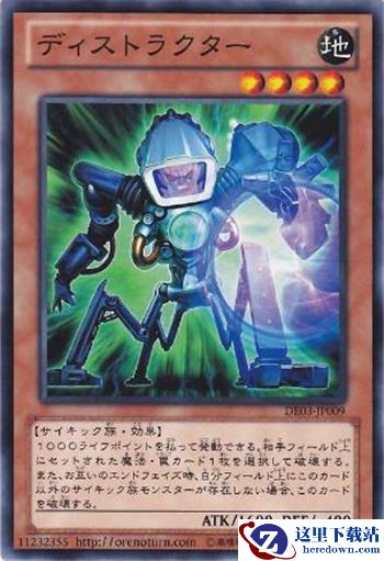 效果:可以支付1000LP发动。选择对手场上的1张盖放的魔法陷阱卡破坏。此外,双方的结束阶段时,自己场上没有这张卡以外的念动力族怪兽存在的场合,这张卡破坏。