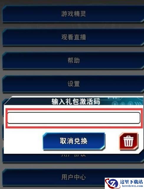 3、在输入礼包激活码下面的白色框框里输入获取的兑换码。