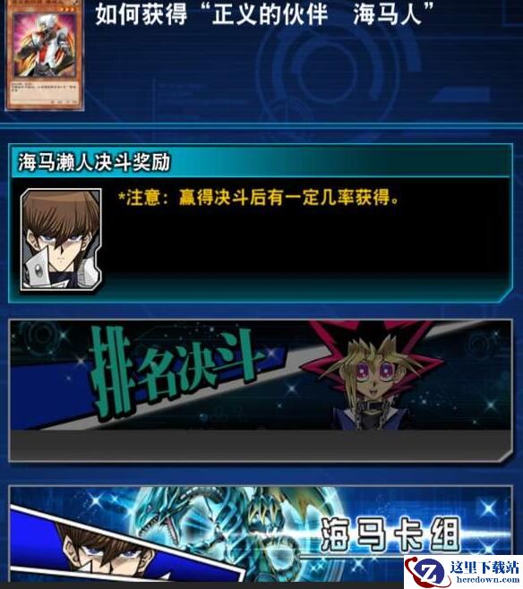 以上就是小编整理带来的《游戏王:决斗链接》正义的伙伴海马人获得方法,大家还喜欢吗?更多精彩内容,请点击关注手游网,小编将持续为您更新!