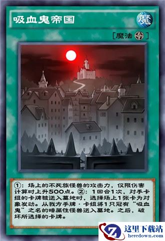 吸血鬼卡组除了「吸血鬼君主」「吸血鬼创世主」以外,还加入了「吸血鬼帝国」这一核心场地卡,以及下级怪兽,拥有1550打点的「吸血鬼淑女」(什么你说吸血鬼婴儿?加上场地才1200要你何用?)。