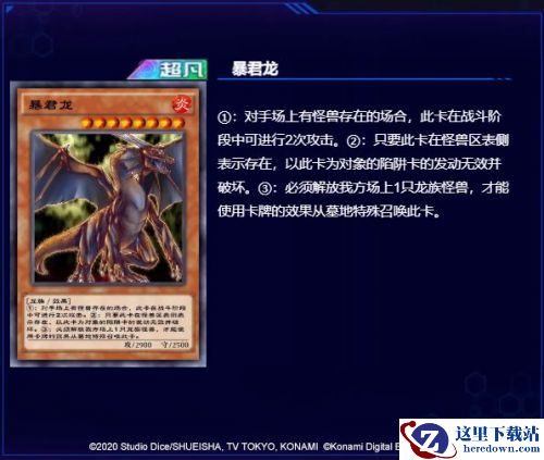 「暴君龙」在攻击1次后, 如果对手场上还有怪兽存在,可以再进行1次攻击!而且以他为对象的陷阱卡效果会无效并破坏,一般的陷阱卡将难以阻止「暴君龙」的进攻!