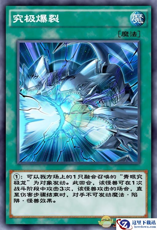 能让自己的强力融合怪兽「青眼究极龙」发动三次攻击,而且攻击时对手还不能发动任何魔法·陷阱·怪兽的效果。