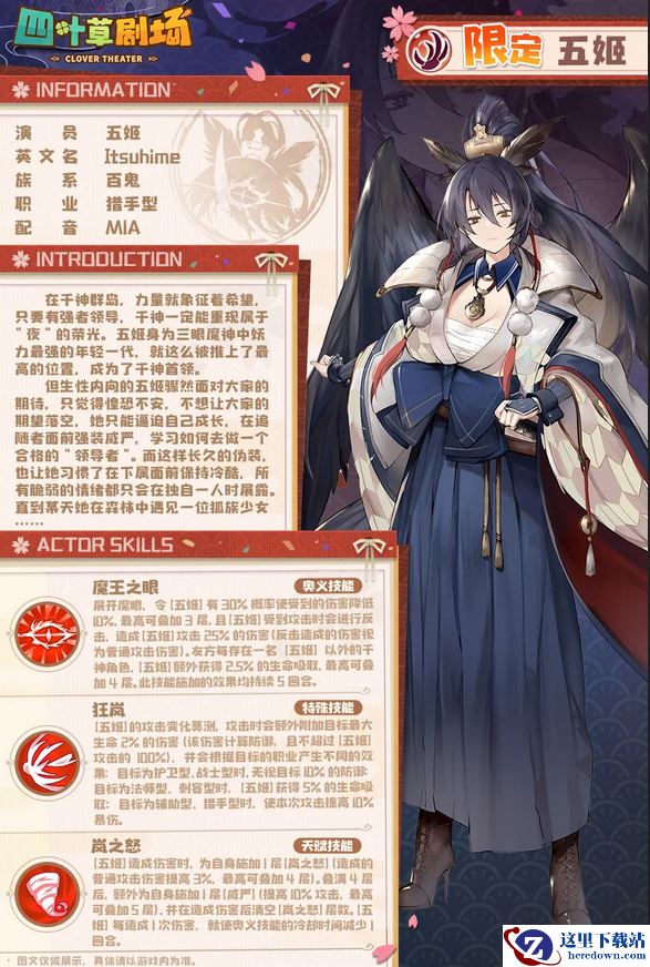 以上就是小编给大家带来的《四叶草剧场》限定演员五姬介绍的全部内容了,更多手游攻略请关注手游网!