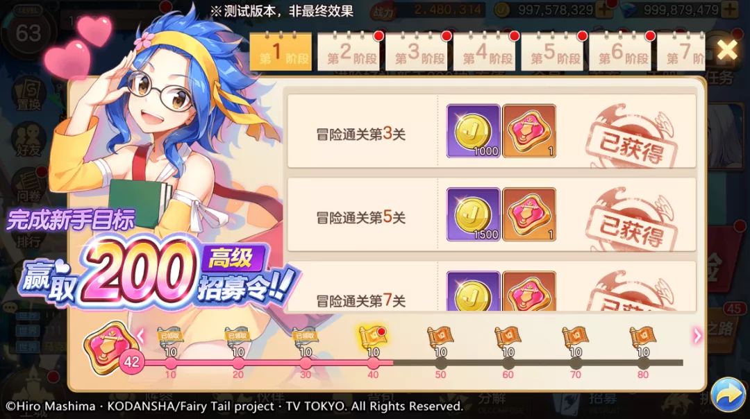 什么?有人说新手200抽不够过瘾?小露大手一挥:那就继续送!进阶好礼将于上线后第二周开启,每日开启一个新的阶段,完成指定任务,魔导士大大们即可领取100高级招募令及红色爆发魔法!再加100抽,如此丰厚的福利,爱抽卡的魔导士们有没有感觉超级幸福呢~