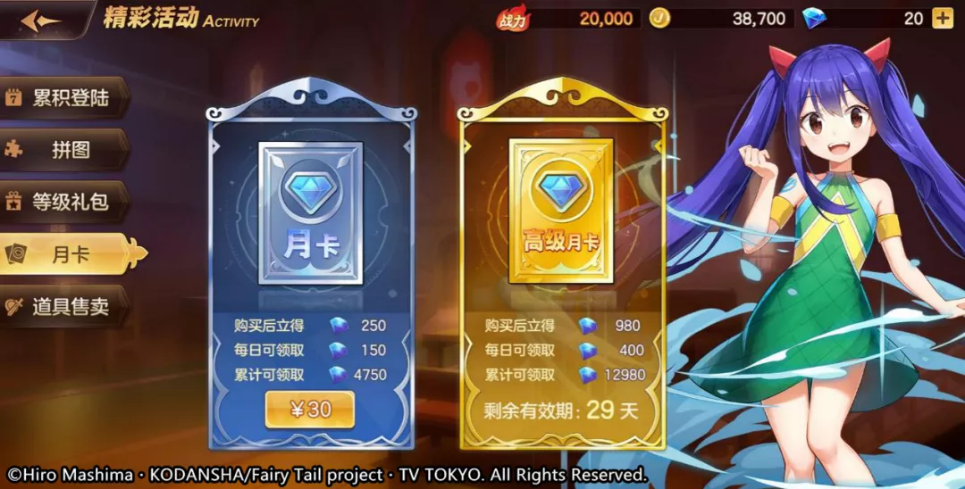 有魔导士大大可能会关心这个问题:钻石能不能多一些获取渠道呀?可以的!双重月卡,奖励翻倍!魔导士大大们可以选择付费购买两张月卡,叠加领取海量超值钻石奖励!