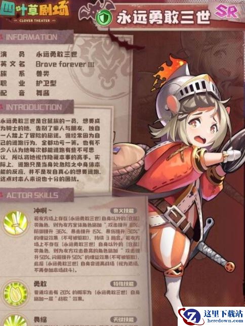 四叶草剧场永远勇敢三世怎么样?《四叶草剧场》游戏中永远勇敢三世的强度很多玩家并不清楚,那么今天小编就给大家介绍一下四叶草剧场永远勇敢三的强度,有需要的小伙伴不要错过了。