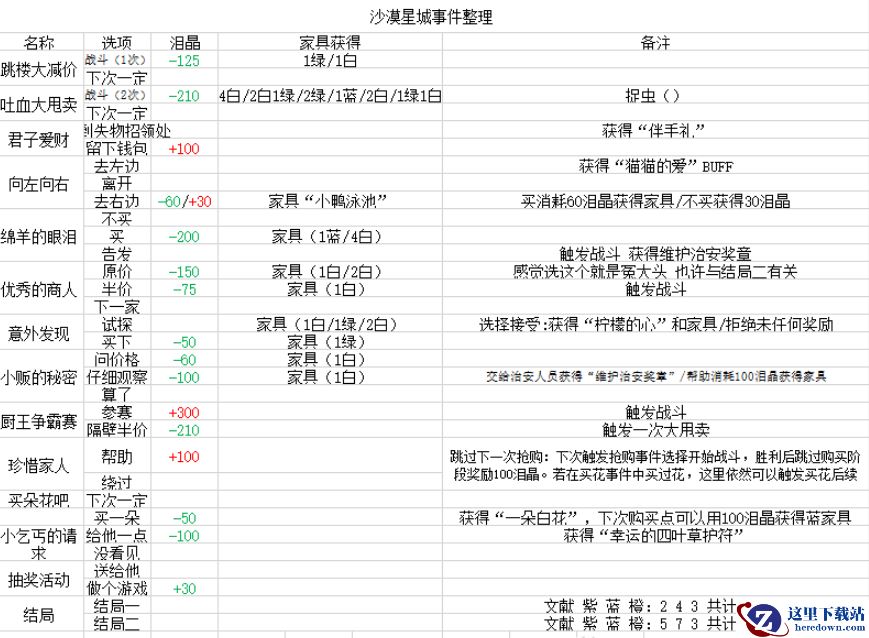 8、家具掉落可能存在偏差,因为我个人更多的走家具购买点(做好事太亏了,事件点还一堆花钱买垃圾的),所以对事件的家具获得情况统计的样本量很少,欢迎补充。