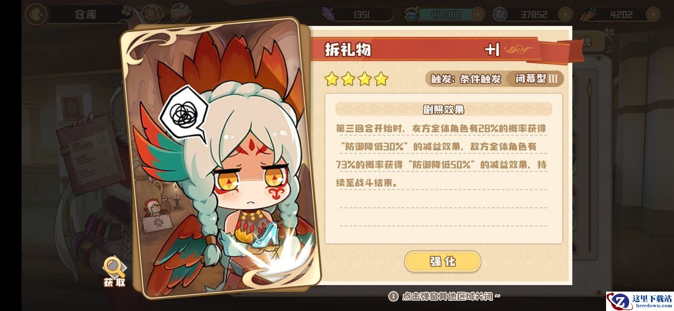 这个剧照能概率上永久50%破防,并且吃得到3回合的剧照1加成。