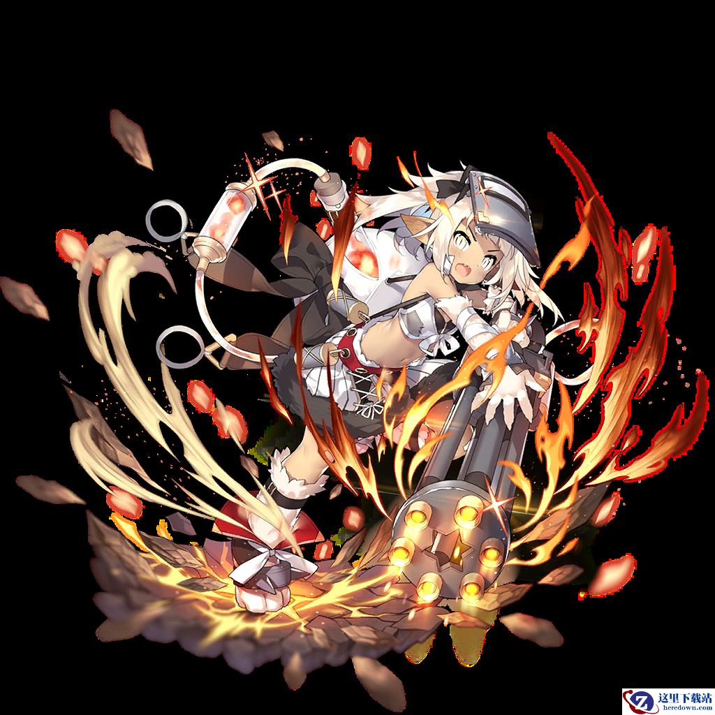 从包中掏出机枪扫射敌人,对敌方全体造成共计320%的火属性伤害,伤害由所有敌人分担,并附加[[破甲]]效果。