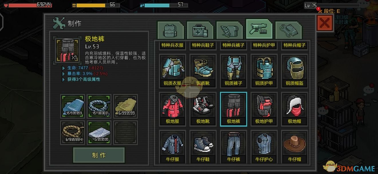 裤子提供生命以及暴击率两项基础属性。