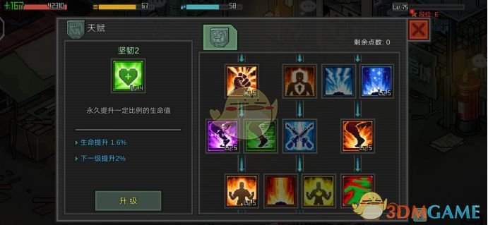 2、第三层天赋建议选眩晕,虽然对精英怪无效,但是在前期的用处还是不低的。第四层天赋要点需要三层消耗共10点,所以我们可以考虑把第三列的愤怒以及狂野给点上。