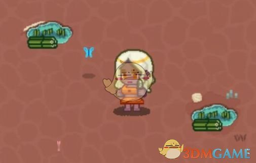 首先,先来到湿地的位置,只有湿地才会有芦苇,我们用尖石先割掉两块芦苇。