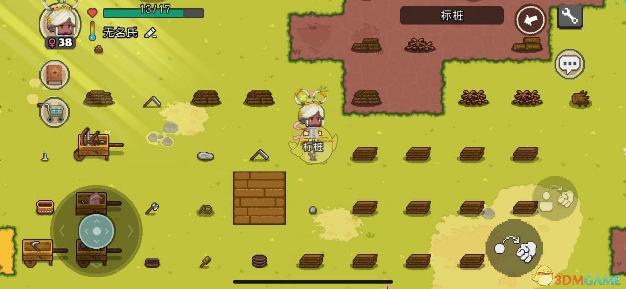 将标桩放在想要铺地板的地方,用圆石砸一下变成底板标桩。然后将木版铺在标桩上就做好了一层地板。