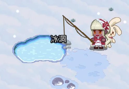 当前版本只有冰洞可以钓鱼,找到冰洞后,将鱼饵装在鱼竿上,就可以将鱼竿甩入冰洞钓鱼了。