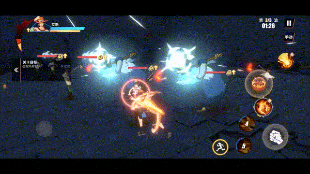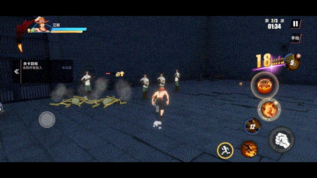 召唤艾斯进场援助,艾斯借由双手化作火焰后抛出多段火焰矛攻击身前一定范围内的目标。