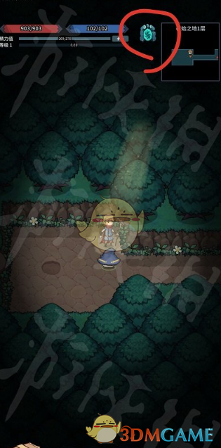 首先进入游戏主界面,点击上方标注位置推出地下城。