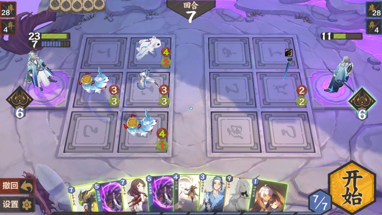 换好了手牌之后,我们就正式进入对战了。天梯对局就是双方斗智斗勇的过程。因此我们要先熟悉基本的战斗流程。九野是回合制的游戏,但是九野之中的回合不是交替进行,而是同时进行的,这就意味着在开始之前的布局将会直接影响到战斗的结果。