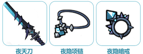 目前『夜隐套』包含了服装及武器首饰,共8件:
