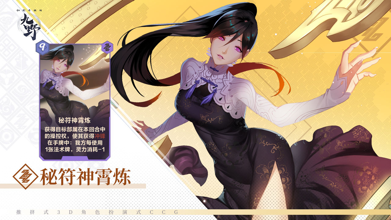 “秘符神霄炼”可以获得目标部属在本回合中的操控权,使其获得冲锋(部署被召唤的回合可以立即进攻),虽然听上去很诱人,但9费还是有点略高哈,但是不要只看表面!雷属性卡牌最不缺的就是法术牌,只要利用好卡牌描述中的“在手牌中:我方每使用一张法术牌,灵力消耗减1”最后你就有可能拿到一张低费的“秘符神霄炼”。