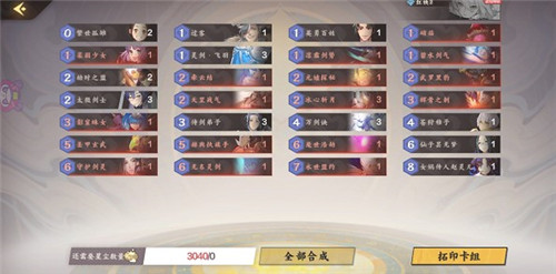 1.玩家在拓印卡组之前可以看到下方有一个全部合成的选项,这个可以合成当前卡组中玩家所缺的卡牌;