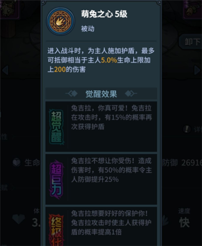 但如果你中后期想用兔吉拉的话,最少也要升到9代,也就是让其超觉醒,学会15%概率刷盾的技能才能用。初略的计算了一下:199/3*488钻石=32500钻石,也就是要买六十多个礼盒。