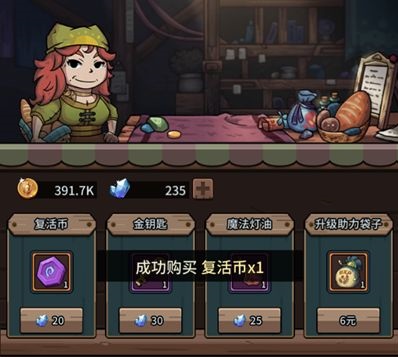 1、玩家可以通过杂货铺中购买得到复活币。